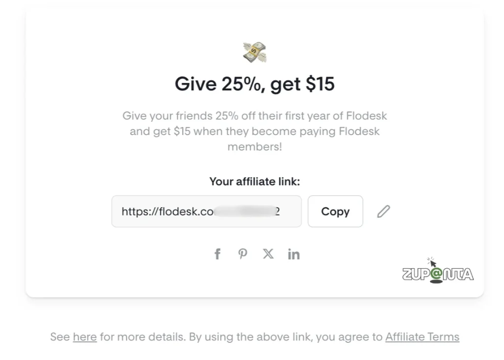 Once you click, you will get a unique URL that is your referral link. You need to share this link with your community so people can join Flodesk with your referral link.