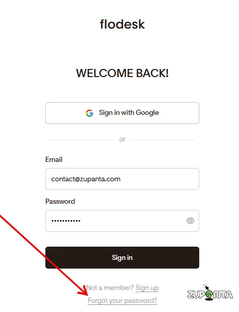 - Go to the Flodesk Log In page and click on the option “Forgot your password?”.