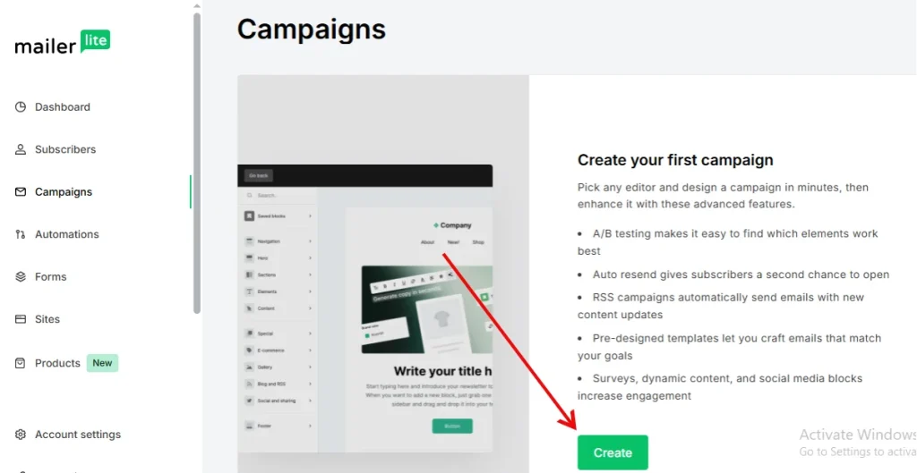 Creating your first email campaign in MailerLite is the moment when the fun begins. This is the feature most people join the platform for, and the process is easy. You only follow a few steps, and you will have a clean newsletter ready for your audience.