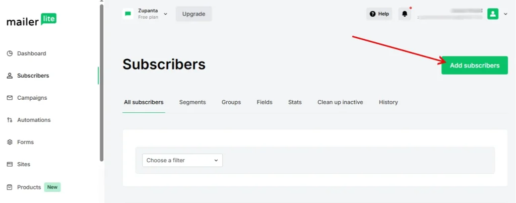 Before you start any task, you must upload your subscribers’ list to MailerLite’s dashboard. Here are the steps to follow: