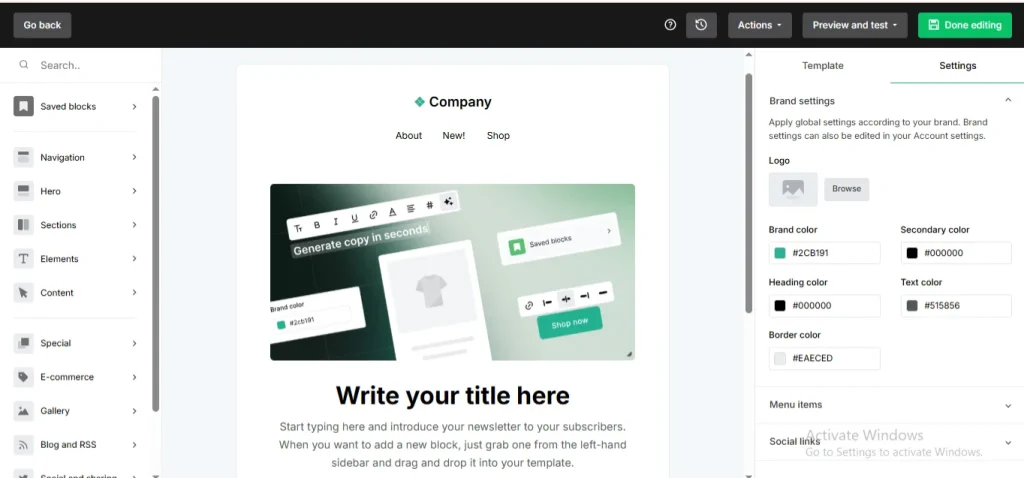 This is where your email comes to life. MailerLite offers more than 50 ready-made templates. Pick one you like, change the text, replace images, and adjust the layout. Keep the design clean. Add clear headings, short lines, and a simple call-to-action.