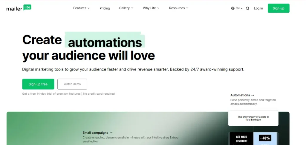MailerLite is one of the favorites email marketing tools in 2025 and I have gained positive ROI from this tool. You should give it a try if you are looking for an affordable yet full of features marketing tool.