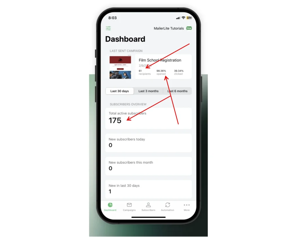The app is useful for checking campaign performance in real time. You can see who opened your emails, track clicks, and monitor subscriber growth. This way, you stay updated without waiting to reach your laptop.