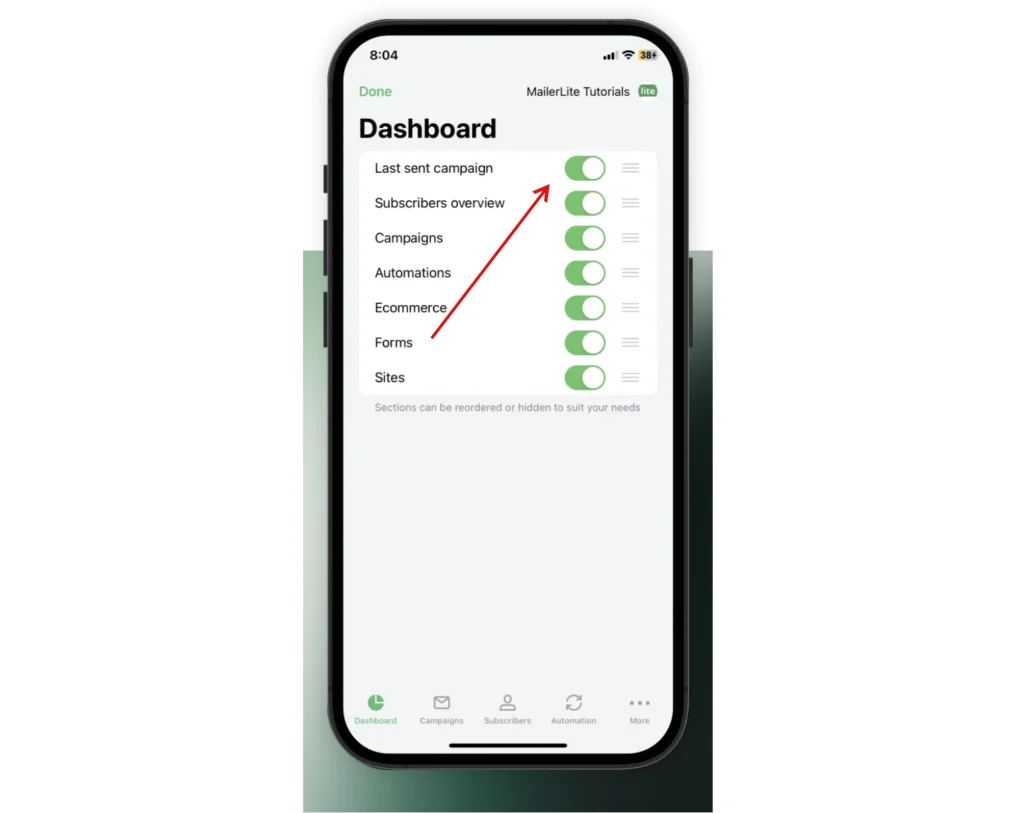 You can also manage automations, forms, and workflows on the go. Turn automations on or off, see which emails are performing best, and check analytics, all from your phone.