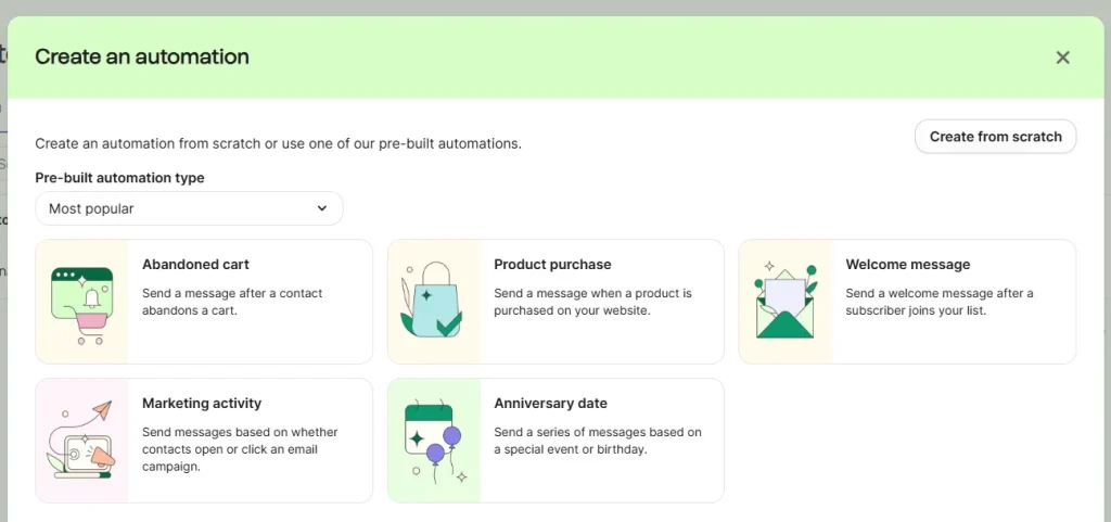 Now, click on the “Create an automation” button to start the process. From here, you will get two options. Either you can choose the pre-built automation, or you can go with a personal or customized one.